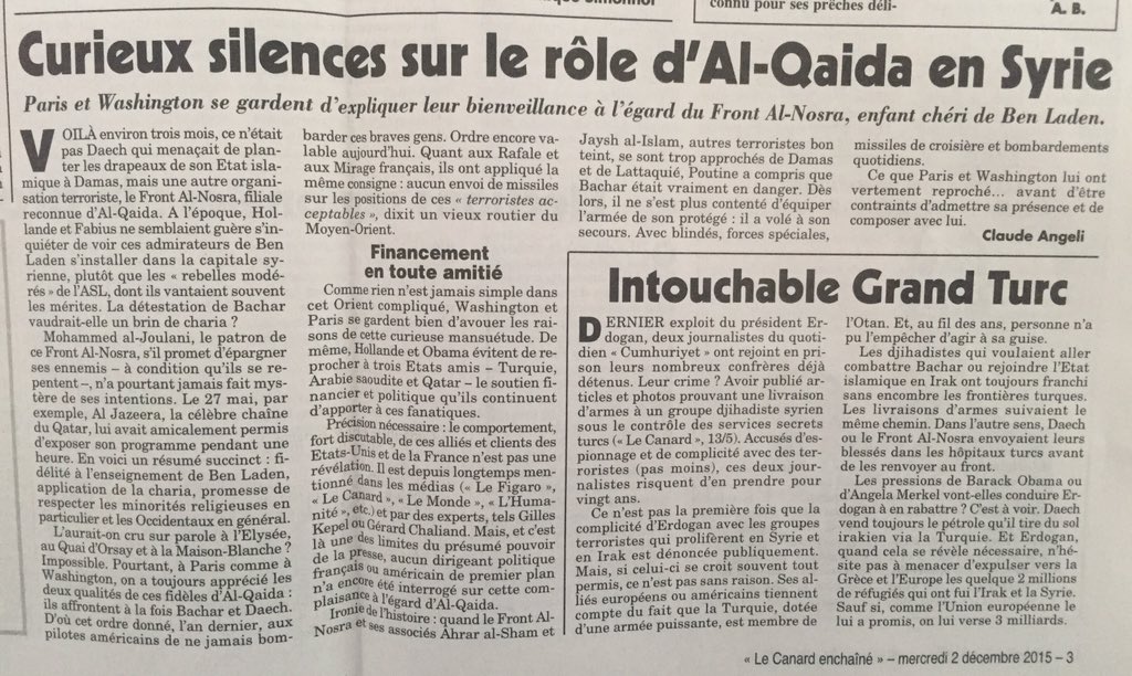 4 Décembre 2015, Canard enchaîné du 3 décembre :