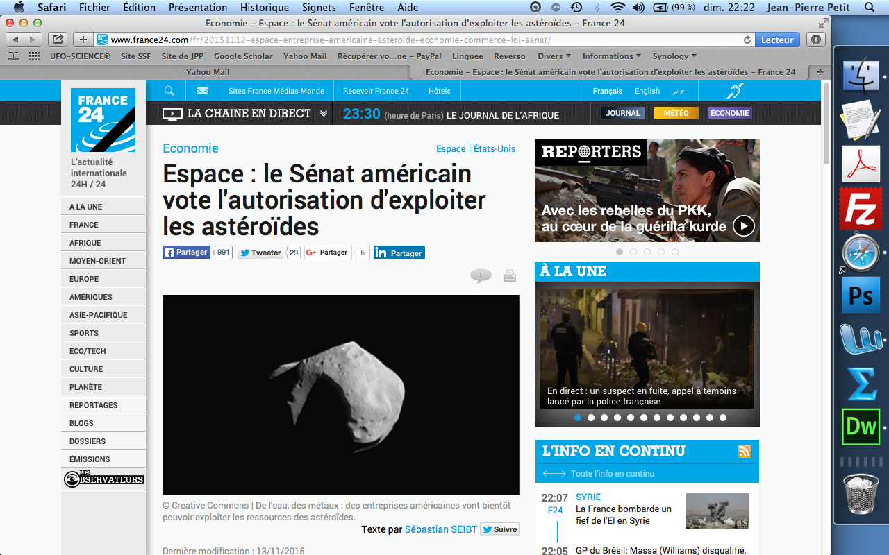 23 mars 2017 :ANNONCE : Nous donnerons, J.C. Bourret et moi une conférence le 22 avril à Hyères, sur le sujet OVNI, sur réservation. LIEN