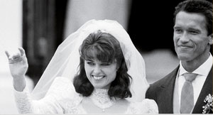 de même que l'épouse de Schwarzenegger, issue de la famille Kennedy, photograhiée ici leur jour de leur mariage :
