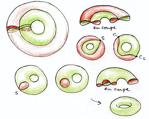 Au cours de ma conférence j'ai évoqué l'art et la manière de permuter les deux points cuspidaux d'une Cross Cap, en utilisant le retournement de la sphère. Je ne sais plus si j'ai mis cela quelque part dans mon site. C'est un tel fouillis. Il faudra que je cherche, sinon je mettrai cela quelque part. C'est assez amusant. Toujours est-il que cette prestation ne plut guère à un des présent, lors du séminaire.