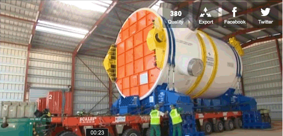 Les images ci-après, extraites de la vidéo, montrent la maniplation de la cuve du réacteur, pesant 650 tonnes, à l'aide de ce pont polaire.