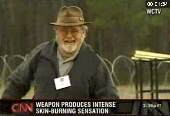 Un lecteur, M. Charles Lahlou, me signale un article paru aux Etats Unis dans le journal New Scientist, qu'il a au passage traduit en français et qui évoque un type d'arme intensivement développé aux Etats Unis. Il s'agit de systèmes destinés à créer la douleur la plus intense possible chez les "cibles". Une des utilisations "collatérales" de ces systèmes est avidemment la possibilité d'infliger des tortures "propres", à distance.