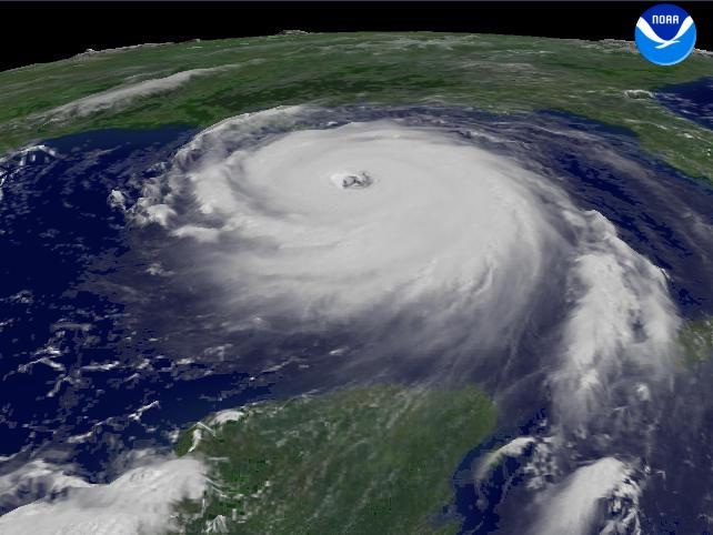 Une vue oblique du cyclone Katrina donne une idée de la monstruosité de tels phénomènes.