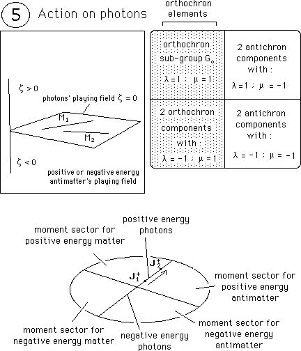 Remark : in this description the fact that the movement corresponds to positive or negative energy element does not appear in the evolution space (top-left).