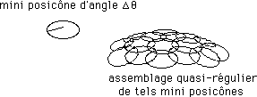 ...On imagine aisément qu'on puisse fabriquer un grand nombre de mini posicônes d'angle Dq faible et qu'on puisse les coller les uns sur les autres. On pourrait même se débrouiller pour qu'il y ait une densité de courbure constante par unité de surface, en assimilant cette courbure à la somme des Dq associés à chaque sommet de ces mini posicônes.